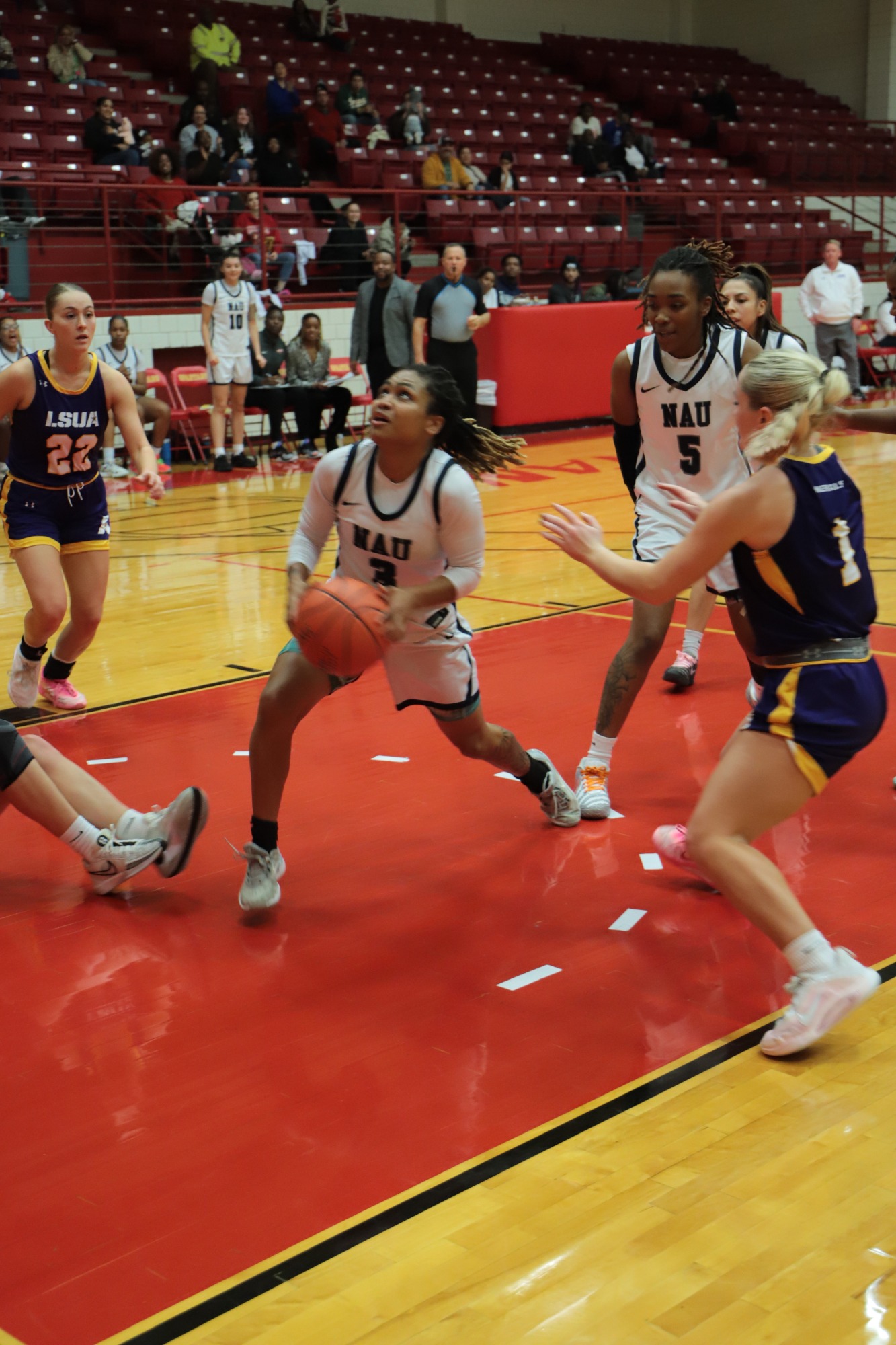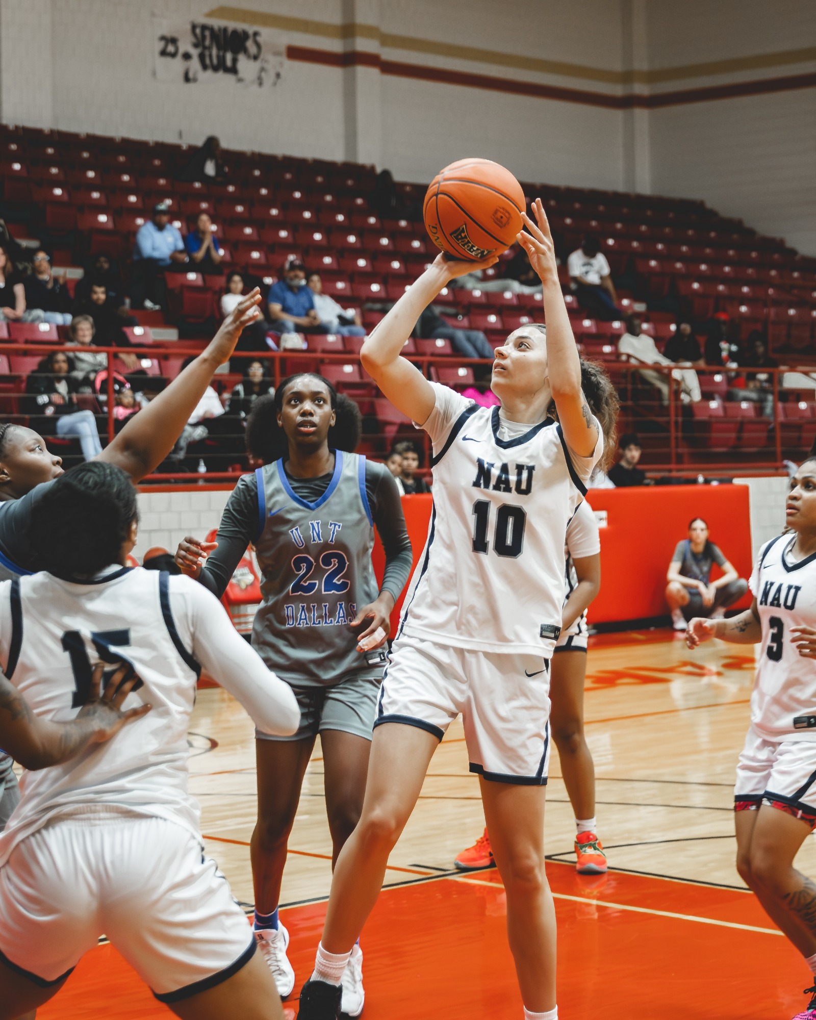 Box Score NAU Women's Basketball played away in Arlington, TX versus Arlington Baptist College. NAU was outrebounded by Arlington Baptist College and gave up second-chance points. NAU's turnovers created a large deficit to a loss and a final of 58-103.